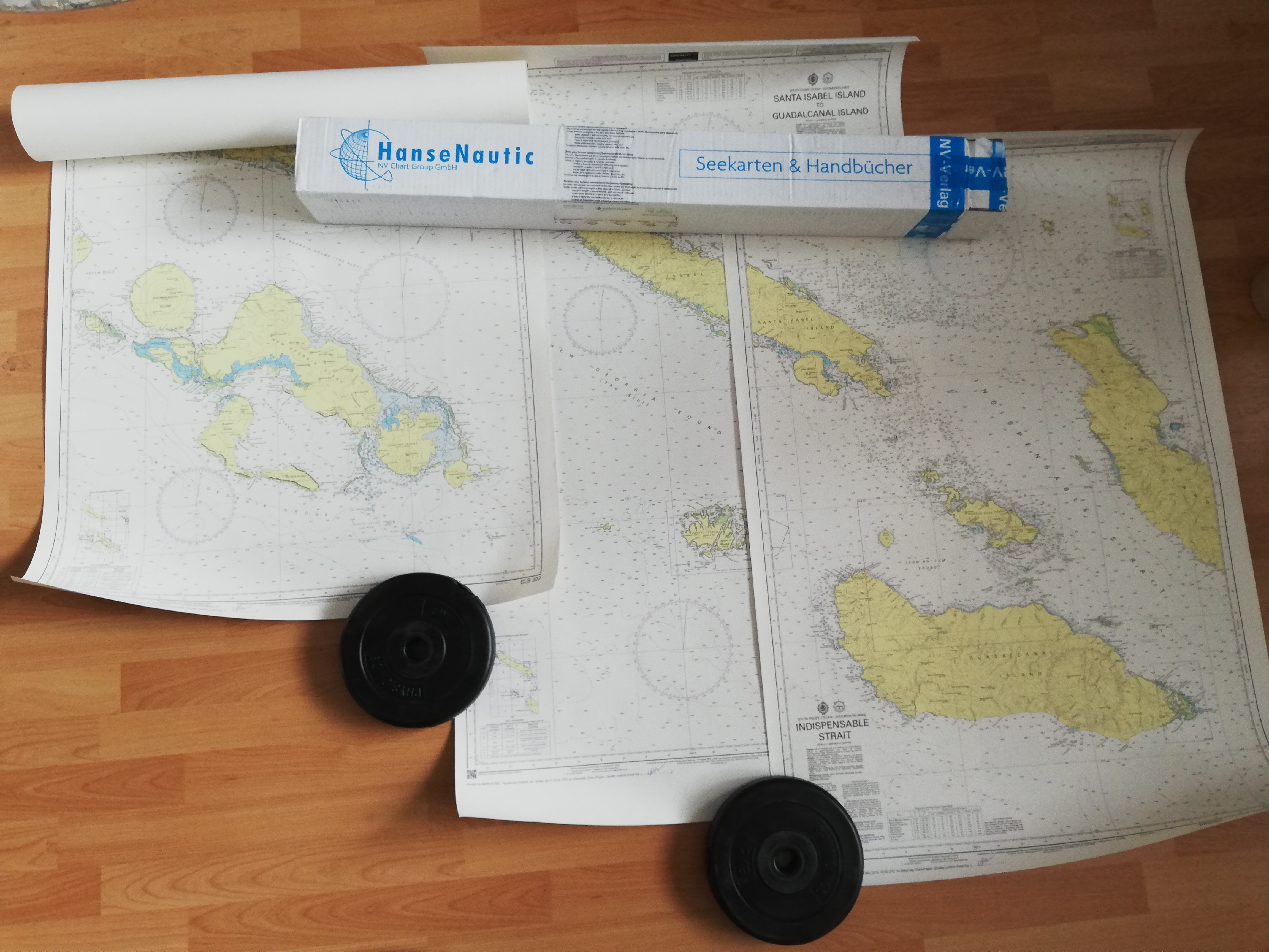 Some weeks ago we already received the printed nautical charts for our trip. To use the same charts with the GPS I know scanned the important areas and separated them in many small jpg-files. Thiese image files I imported into Google Earth as “Picture Overlays” to calibrate them. Afterwards it is easy to load the calibrated “KMZ”-Files into the GPS. Most Garmin GPS support this function as Custom-Maps. Sounds easy, but the manuell calibrating of all the image files in Google Earth took me two evenings.